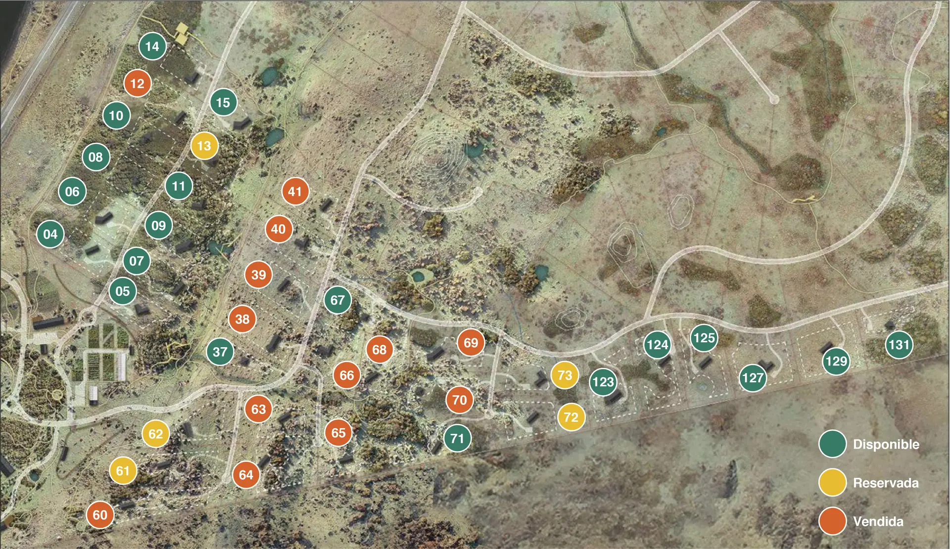 Así, se diseñó un masterplan que respeta las huellas naturales de los cursos de agua y de los senderos de pastoreo originales de Campo Dumestre, integrando sus bosquetes y praderas en el diseño y definición de los caminos interiores y de la zona edificable de cada parcela.